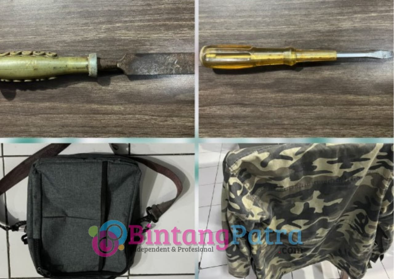 – Jaket loreng, tas selempang abu-abu, serta handphone Oppo A16 milik tersangka.