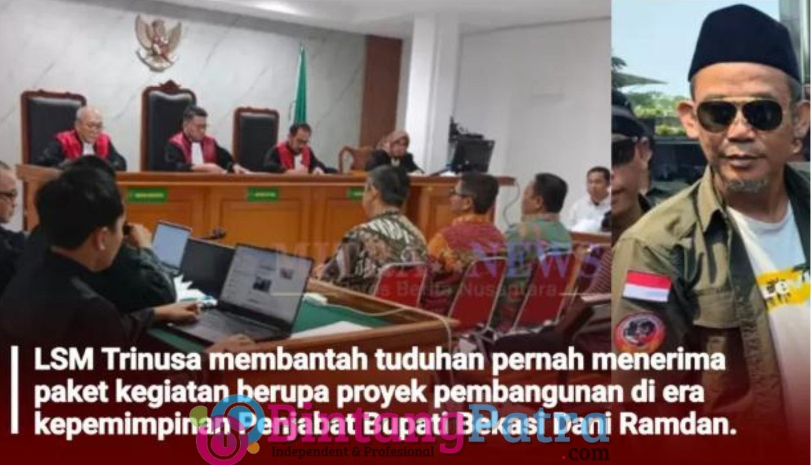 Bekasi – BintangPatra.com – Ketua umum Lembaga Swadaya Masyarakat Triga Nusantara Indonesia (LSM Trinusa), H. Rahmat Gunasin membantah tuduhan pernah menerima paket kegiatan berupa proyek pembangunan di era kepemimpinan Penjabat Bupati Bekasi Dani Ramdan.
