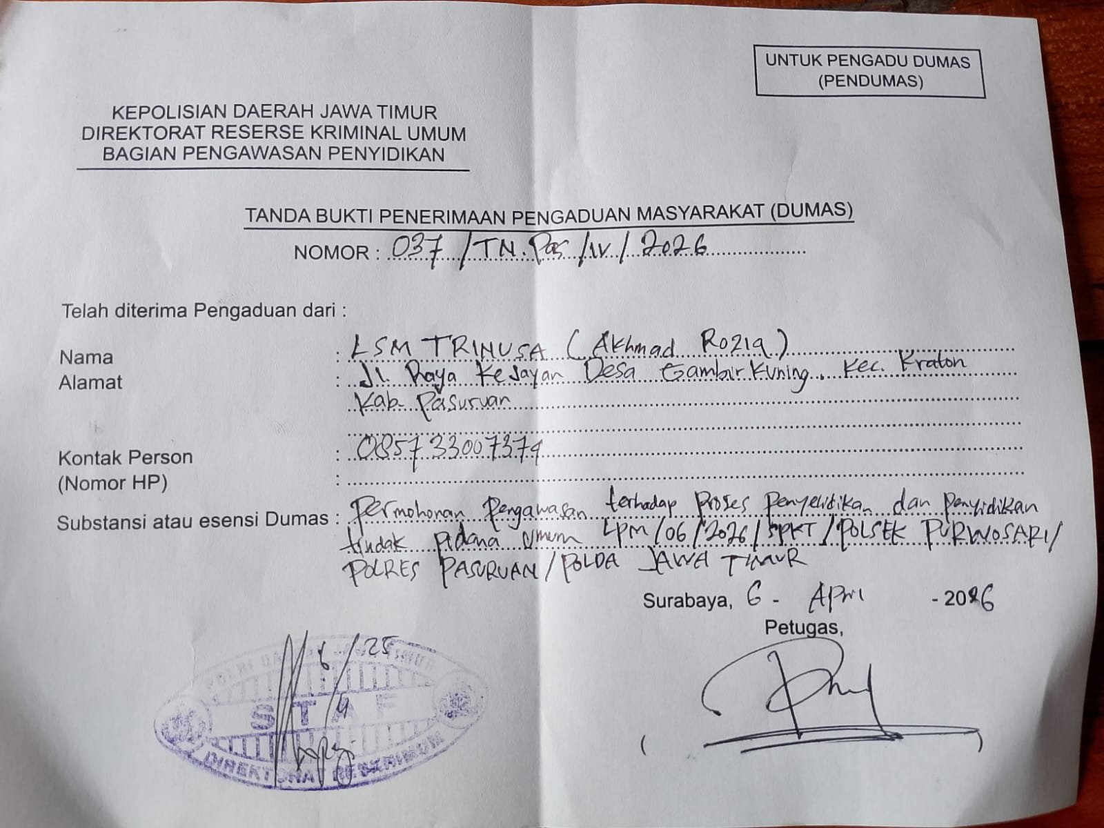 Dengan masuknya laporan ini ke tingkat Polda Jatim, mata publik kini tertuju penuh. Masyarakat menunggu, apakah atensi dari atas akan segera hadir untuk membongkar kebusukan dan menegakkan keadilan yang selama ini ditunggu-tunggu.