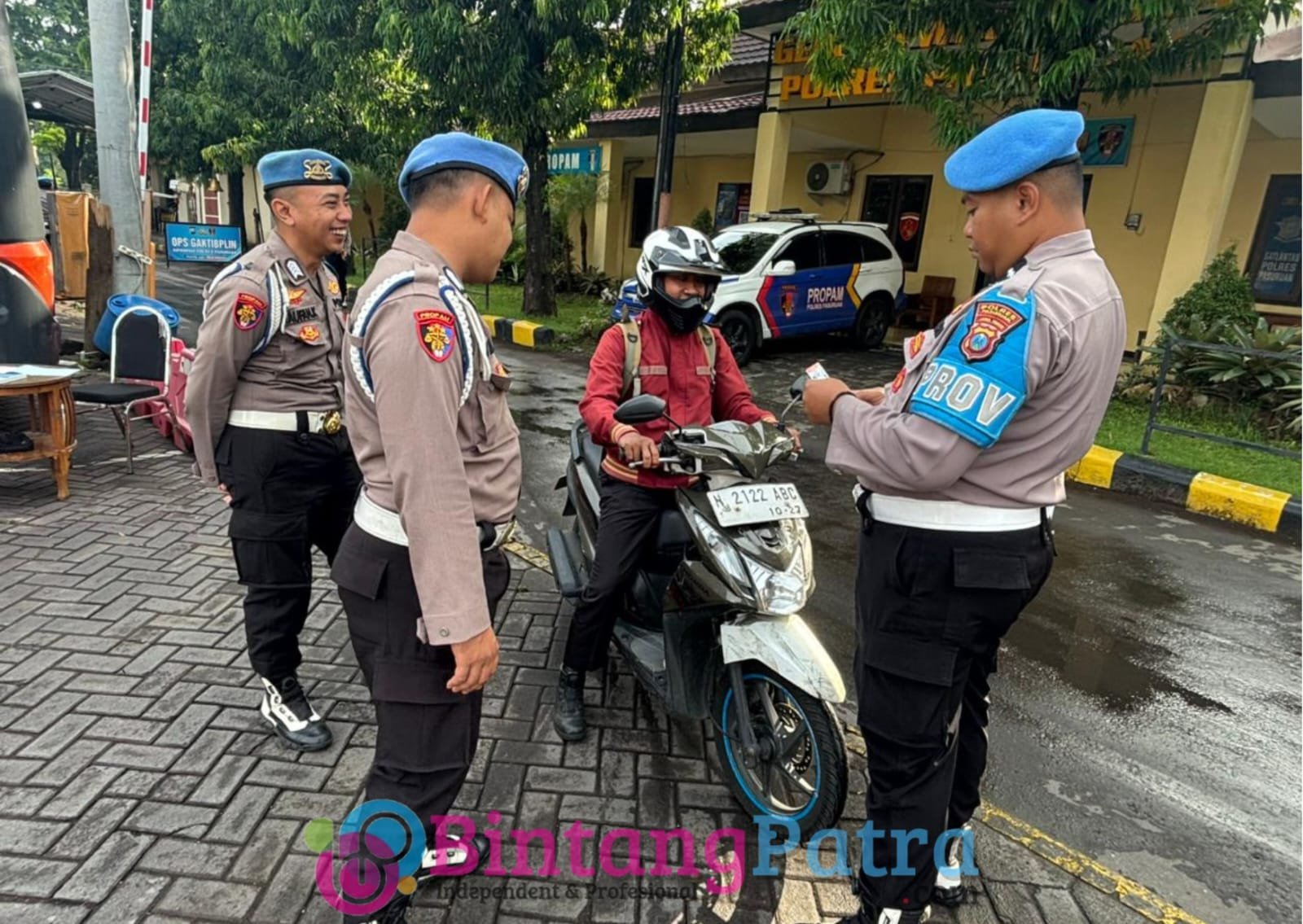 Pasuruan – BintangPatra.com – Ada sesuatu pemandangan yang tidak biasa terlihat di pintu masuk mapolres pasuruan yang terletak di jalan Dr.Soetomo no.1 Bangil pagi ini, terlihat personil Propam dipimpin Kasi Propam Polres Pasuruan AKP. Arif Rahman Hakim melaksanakan giat Gaktibplin (Penegakan Ketertiban dan Disiplin) terhadap seluruh personil Polres Pasuruan, setiap anggota yang masuk baik menggunakan kendaraan roda dua, roda empat.
