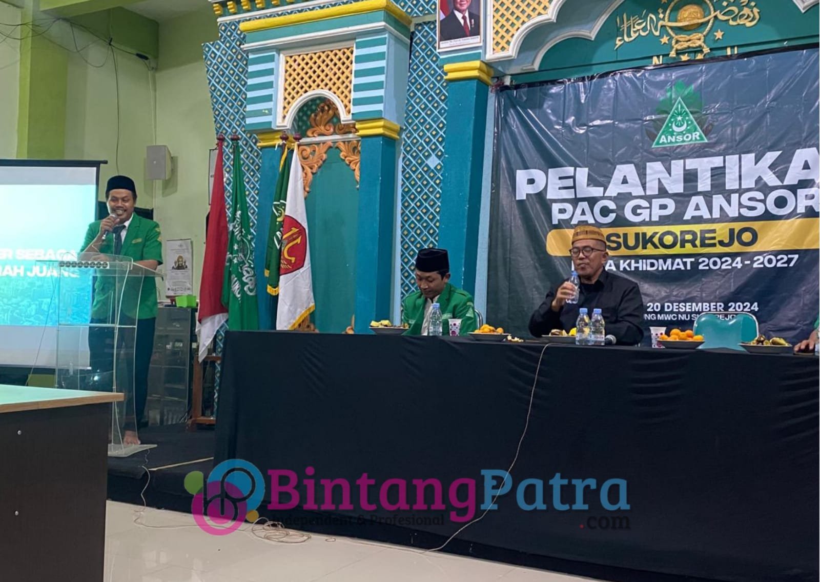 Pasuruan – BintangPatra.com – Pelantikan Pengurus Pimpinan Anak Cabang(PAC) Kecamatan Sukorejo Kabupaten Pasuruan Masa Khidmat 2024 – 2027 berlangsung pada hari Jum’at malam tanggal 20 Desember 2024 di mulai dari jam 20:00 s/d jam 22:00wib di Gedung MWC NU Kecamatan Sukorejo.